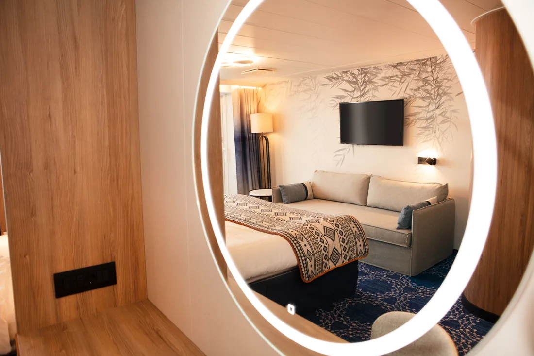 Design agency AMK led the overhaul, with stateroom aesthetics influenced by the destinations the ship will visit. The style feels modern and clean but keeps the personality and warmth that Celestyal is known for.