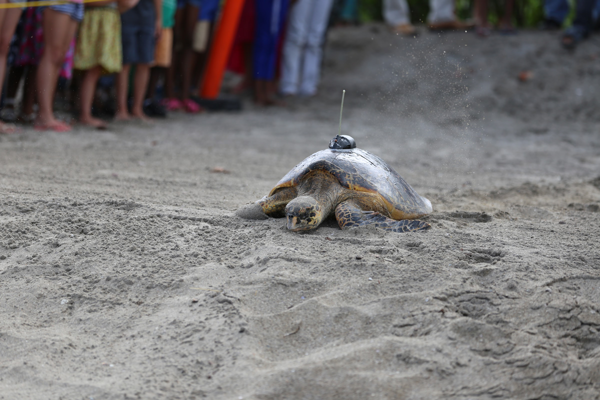 The day of the release was a special one. Nevis government officials, Nevisian locals, hotel guests and employees all showed up on the beautiful sandy resort beachfront to watch Sylvia and Sundrop make their way back into the Caribbean sea. Enjoy my photos from the release below.
